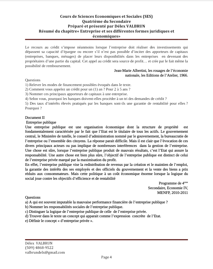 Cours de Sciences économiques et Sociales (SES)